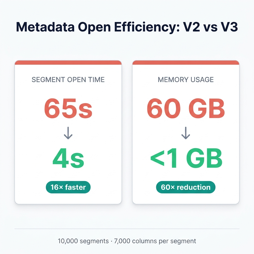 - 列压缩与编码优化:引入更高效的二进制编码与预解码机制,降低运行时解码成本;默认压缩逐步切换至 ZSTD,在压缩率与解压性能之间取得更优平衡。在宽表与明细查询场景中,体现为更低存储占用与更优冷读性能。