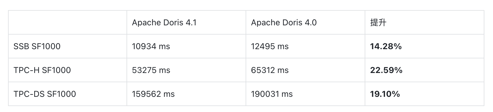 如果说 Apache Doris 4.0 开始顺应这一趋势,那么 Apache Doris 4.1,则是真正面向这一趋势完成了系统性演进。